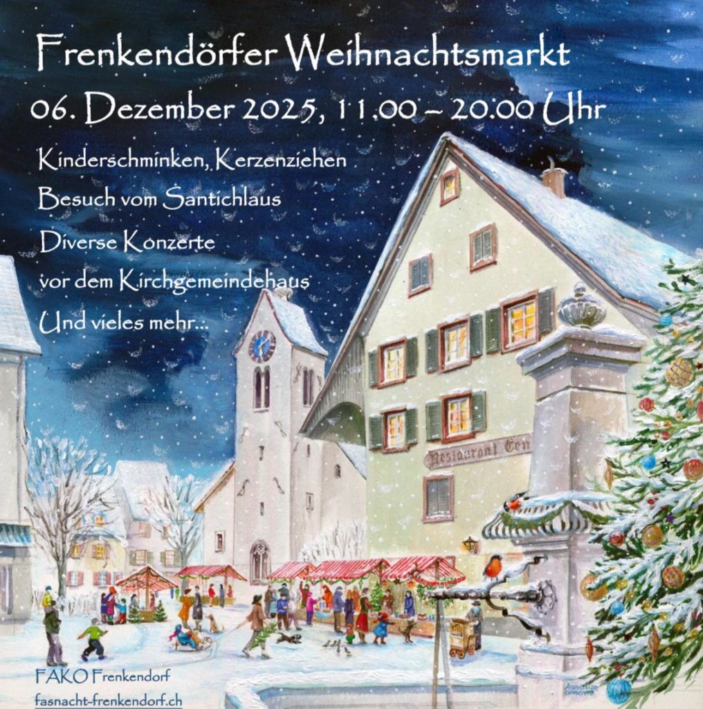Der Weihnachtsmarkt findet am Samstag, 06. Dezember 2025 im Dorfkern von Frenkendorf statt.